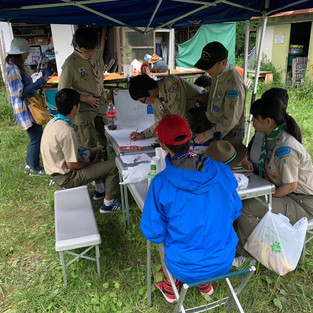 まずスカウト同士に仲良くなってもらうために、自己紹介をしました。今までで1番印象に残っている活動や、各団ならではの活動のことについても話しました。